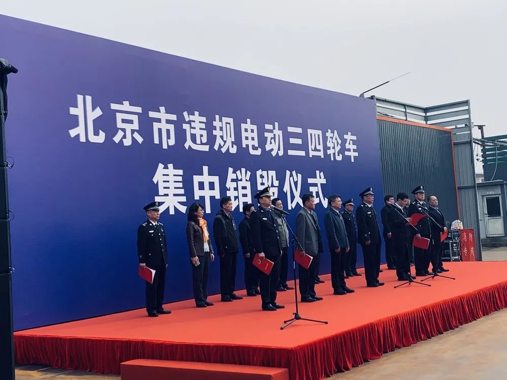 北京1569輛違規(guī)電動(dòng)三四輪車在華新凱業(yè)現(xiàn)場被集中銷毀!